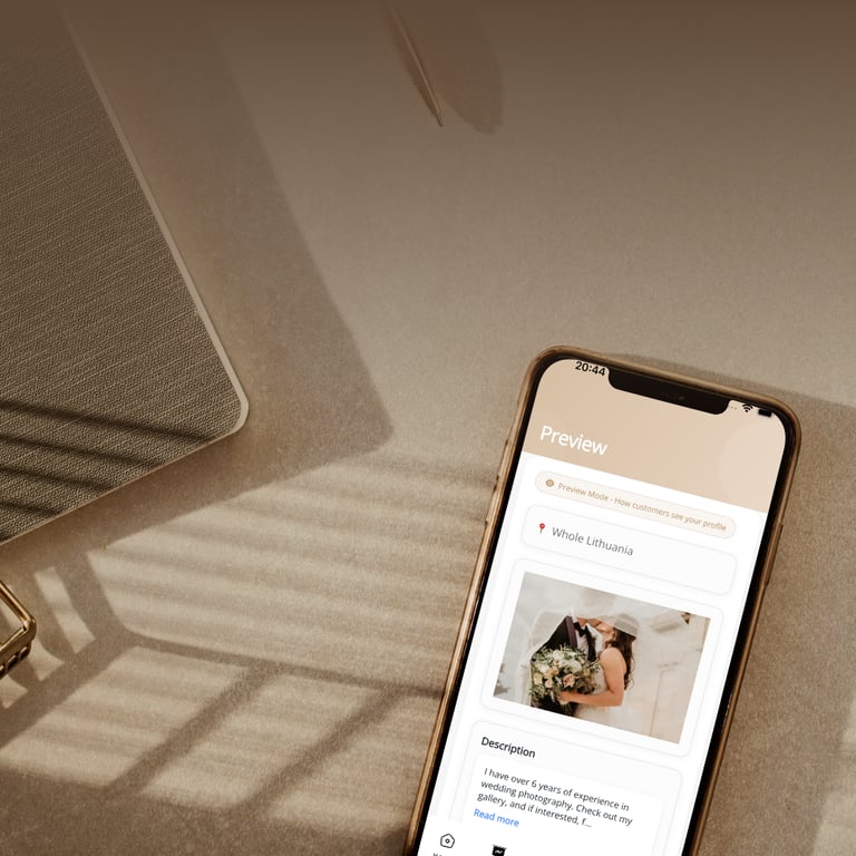Select your category, add packages, add-on's, photo gallery and create your profile.